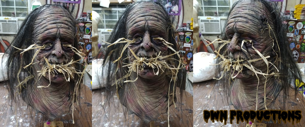 This is a boutique grade latex mask, with hand laid hair, "stuffing", and "stitching".