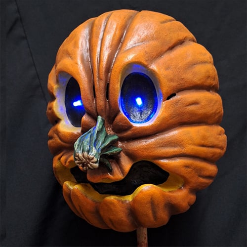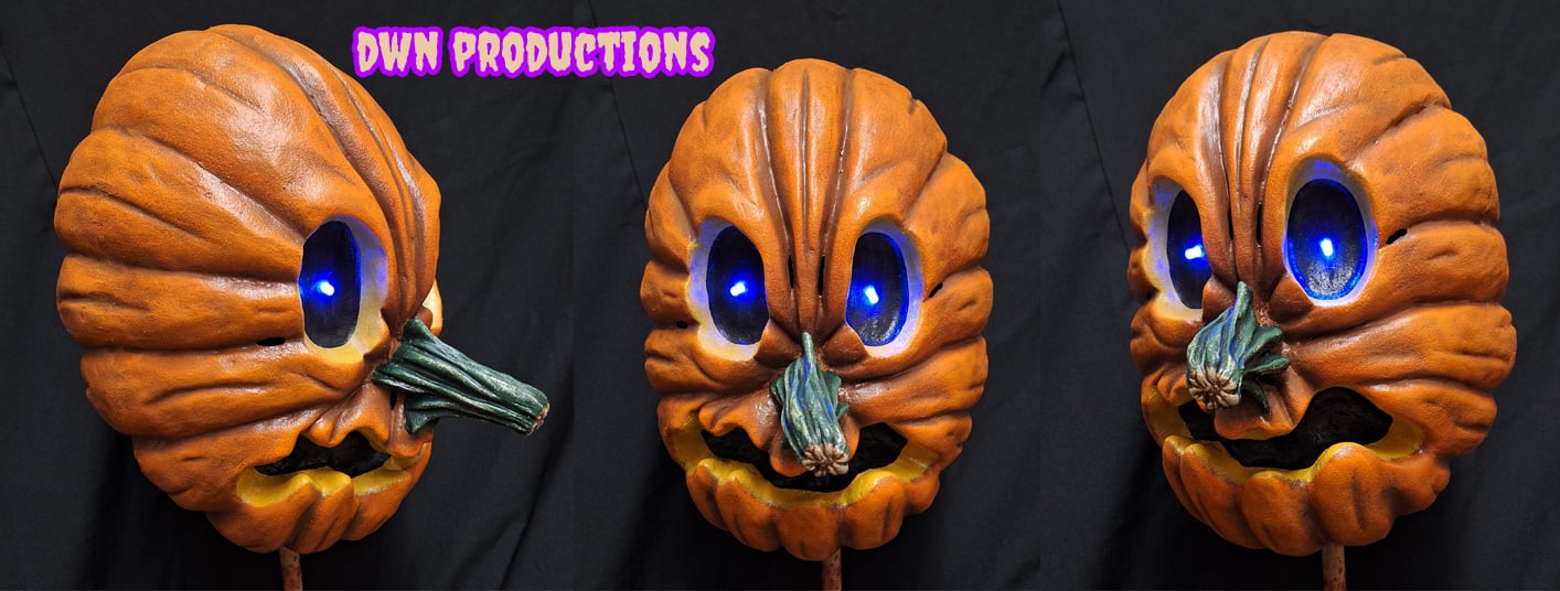 This is a boutique grade, hollow latex prop with led lights in the eyes. Battery not included. Takes 1 A23 battery. Can be made into a mask upon request.